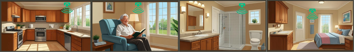 • 24/7 Discreet Monitoring: Tracks motion and routine to detect potential falls, late-night wandering, or health changes.