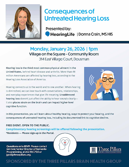 Hearing connects us in every way possible. Without it, we lose touch with life and those around us. Unaddressed hearing loss not only affects the listener's ability to hear sound accurately but it affects higher-level cognitive function. In this presentation you will learn about healthy hearing, how to protect your hearing, and the consequences of untreated hearing loss, including the link to cognitive decline. Free hearing screens after the presentation.
